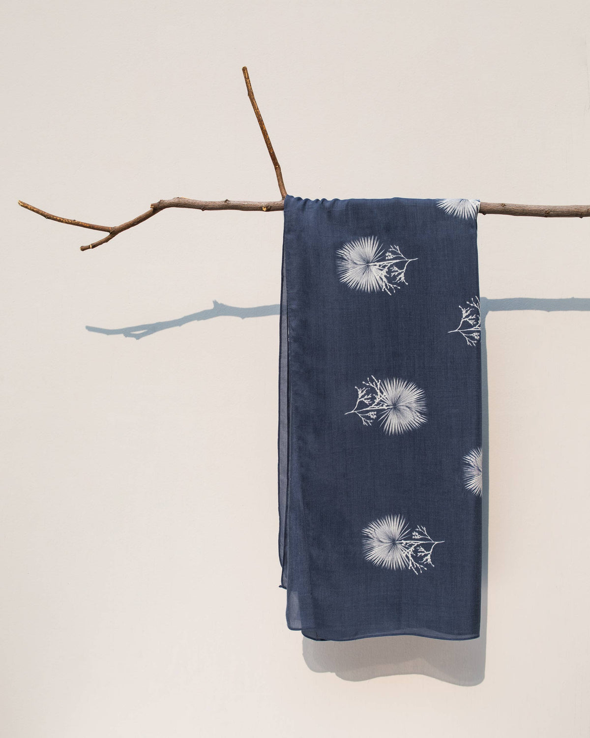 • This one in deep navy has a pretty wispy flower print and is edged in a deep mustard border