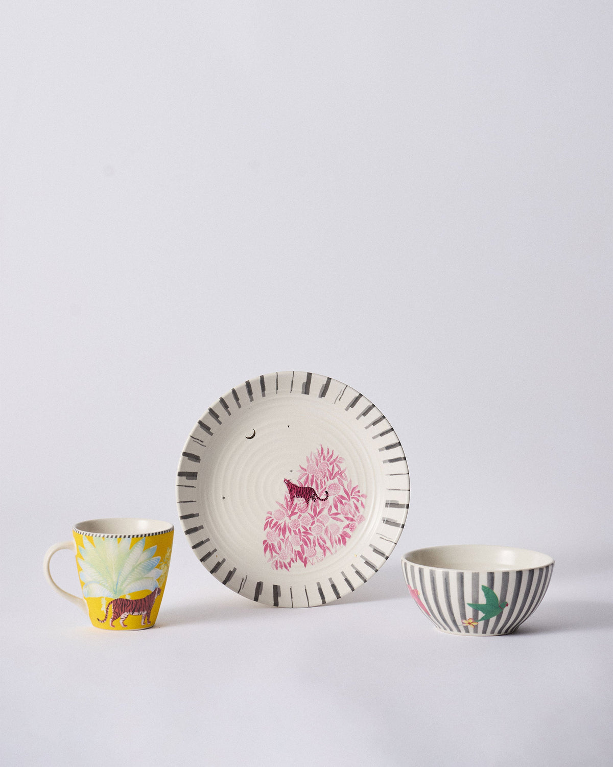 - Start your mornings in a Sri Lankan state of mind with the Ceylon Trail Breakfast set - dressed in monochromes and festooned in bright pink motifs.
