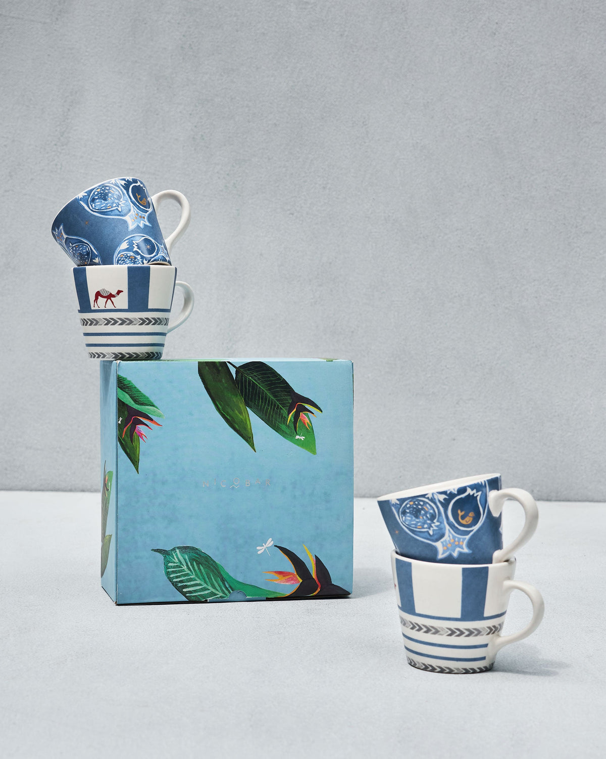 - Inspired by our travels to Morocco, pomegranate and camel motifs adorn the indigo Desert Trail Espresso Mugs. The fruit is a symbol of hope and abundance in the region, celebrating the vibrant spirit of Morocco.