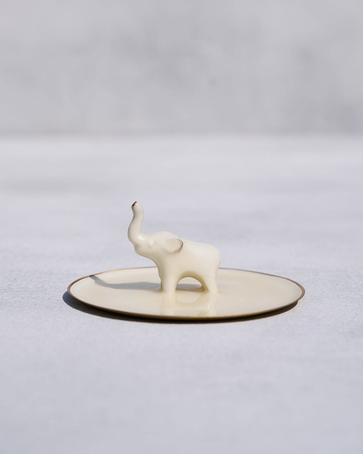 • An eye-catching addition to your tabletop, this haathi trinket tray is crafted in brass and finished glossy white