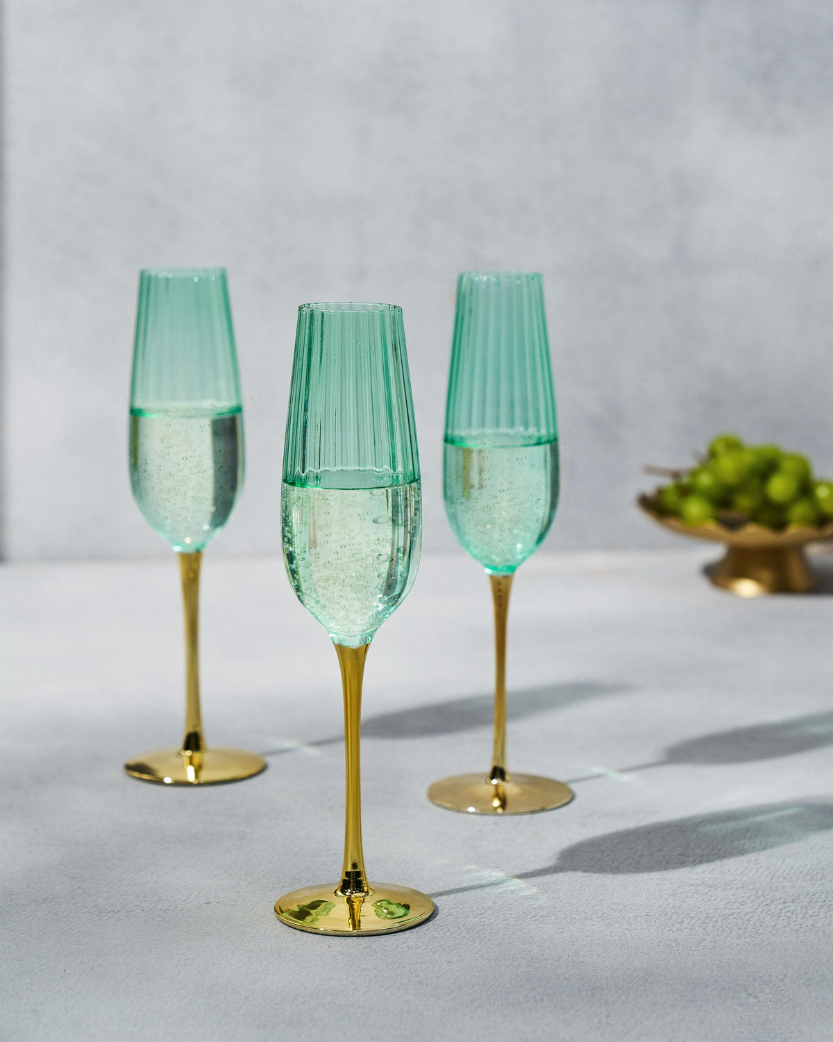 • With an emerald tint, the Emerald Champagne Flutes are elegant, slender and designed to be your go-to glass for all your celebratory moments. The gilded base adds to its beautiful design.