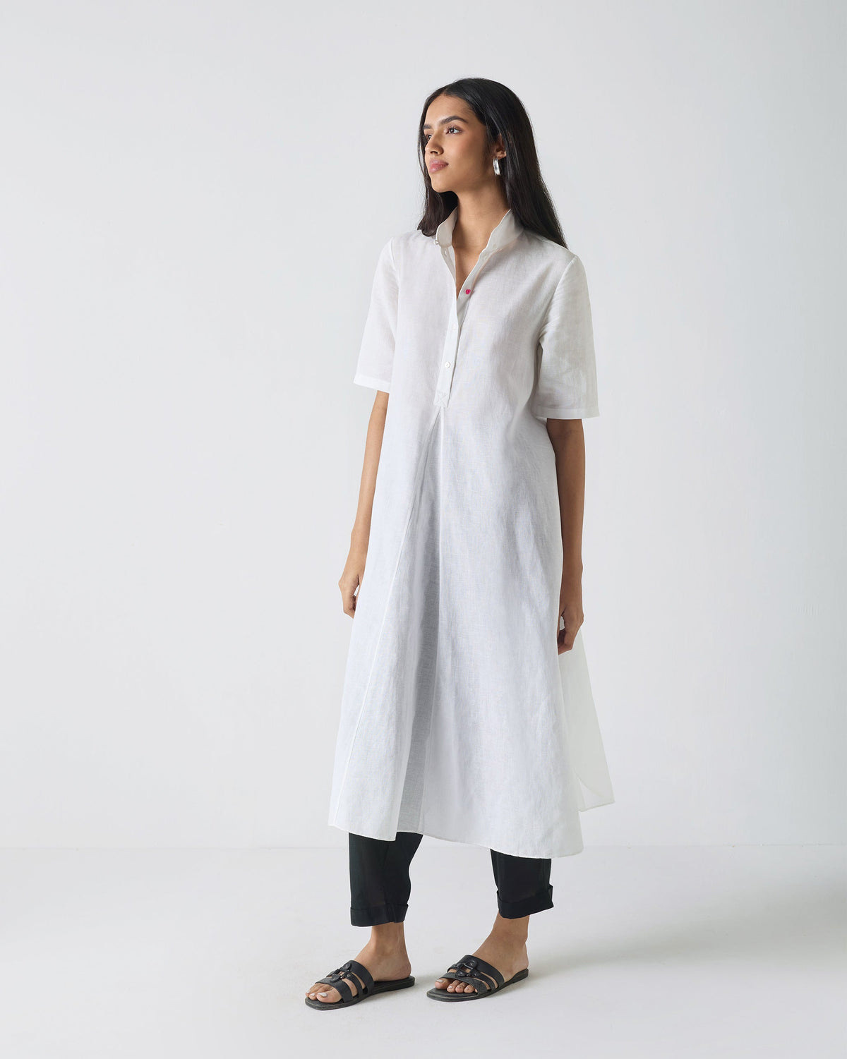 - The Gusset Slit Kurta is a beautifully crafted, timeless piece that blends comfort with unique details. Made from a breathable mix of linen cotton, this kurta offers a light, relaxed fit that's perfect for warm weather.