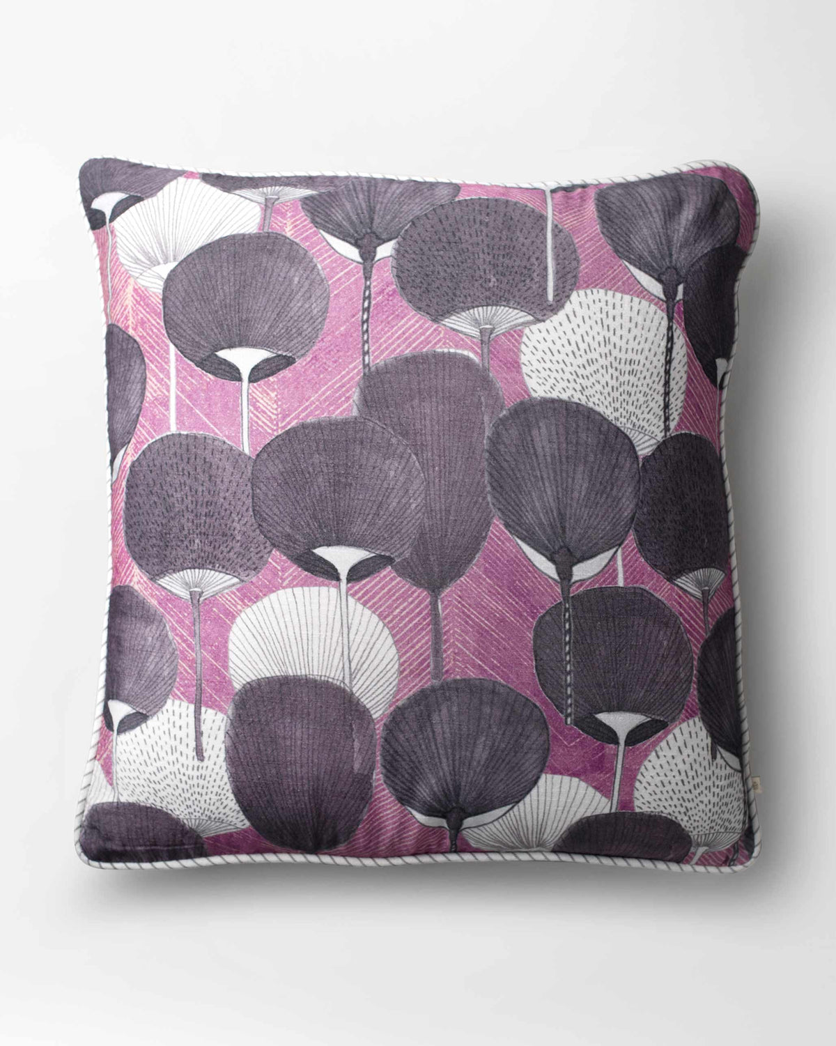 - This one comes in a silk blend, surrounded by a striped border, and with fabric ties, this cushion lends a touch of class to your living room
