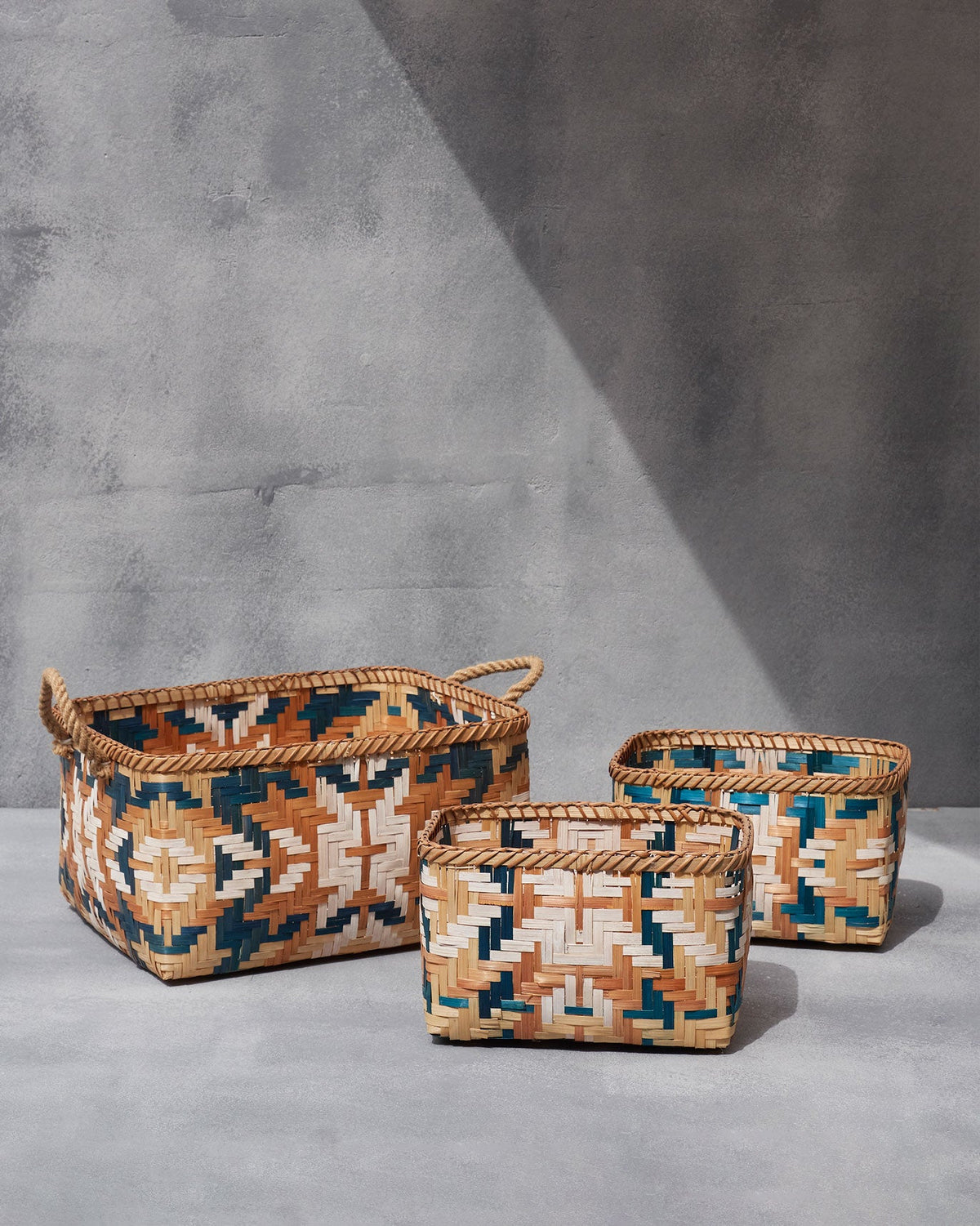 - Super versatile and chic, this set of three deftly woven bamboo baskets is great to hold everything from your laundry to trinkets to kids' toys.