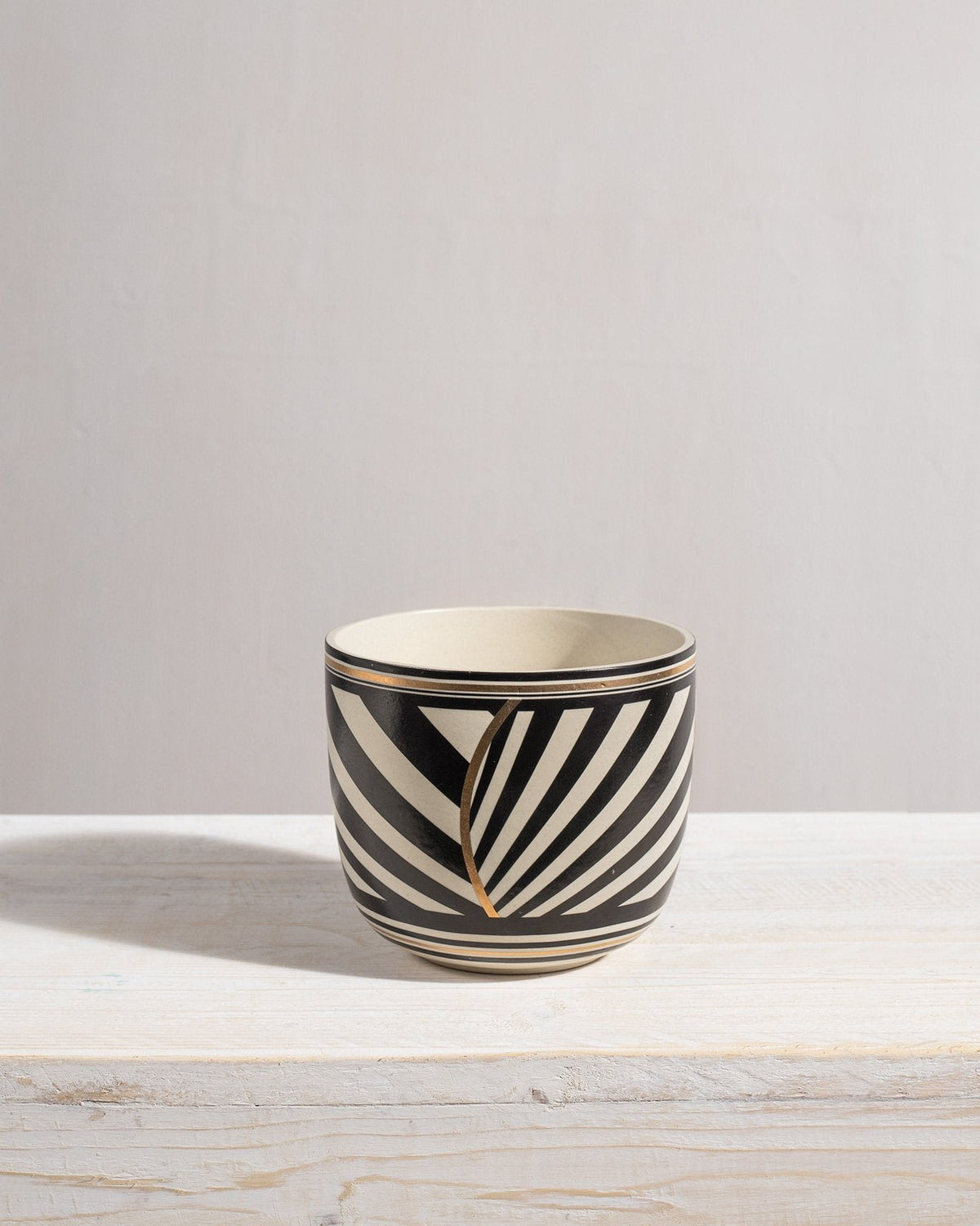 - Features gold accents at the rim.