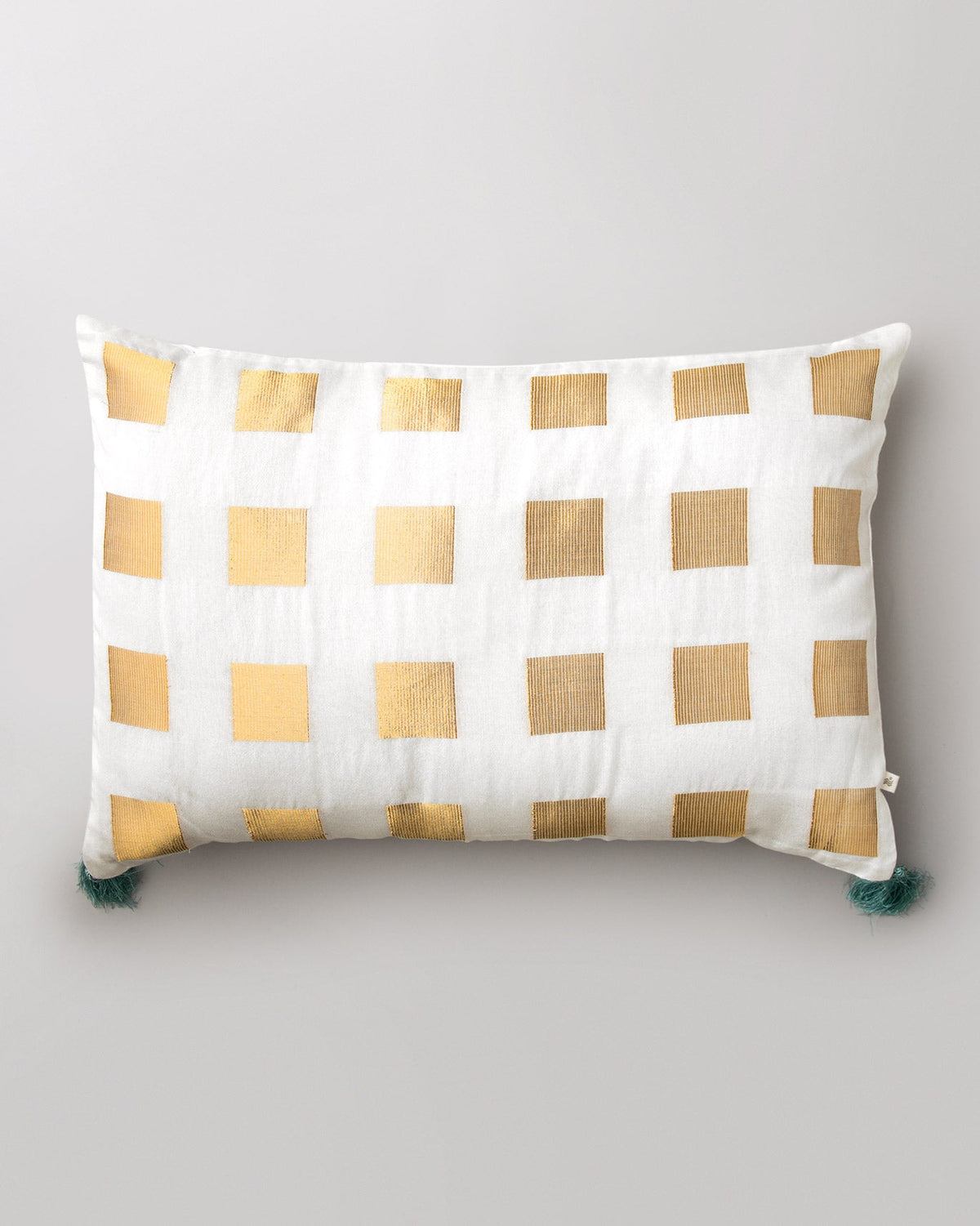 - In a classic white and gold Chanderi checked pattern, this subtle piece is perfect for festivities