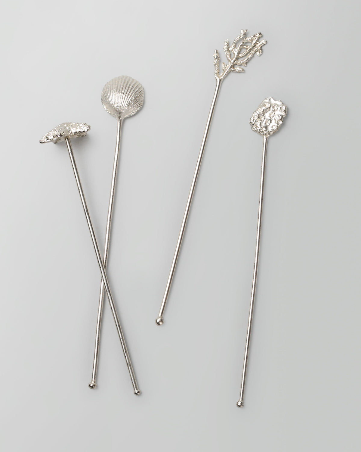 • Borrowing their motifs from nature, our brass stirrers feature starfish, shell, coral and pod elements with a pretty silver finish