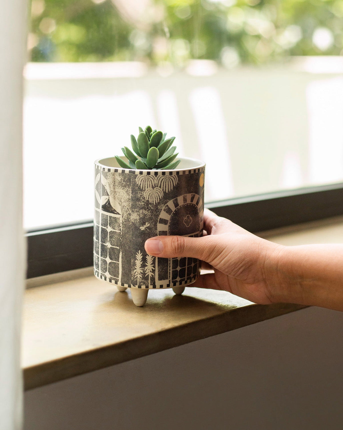 • Featuring the windows; architectural chronicles of Mario Miranda’s Goa, our planter is crafted with ceramic in charcoal grey