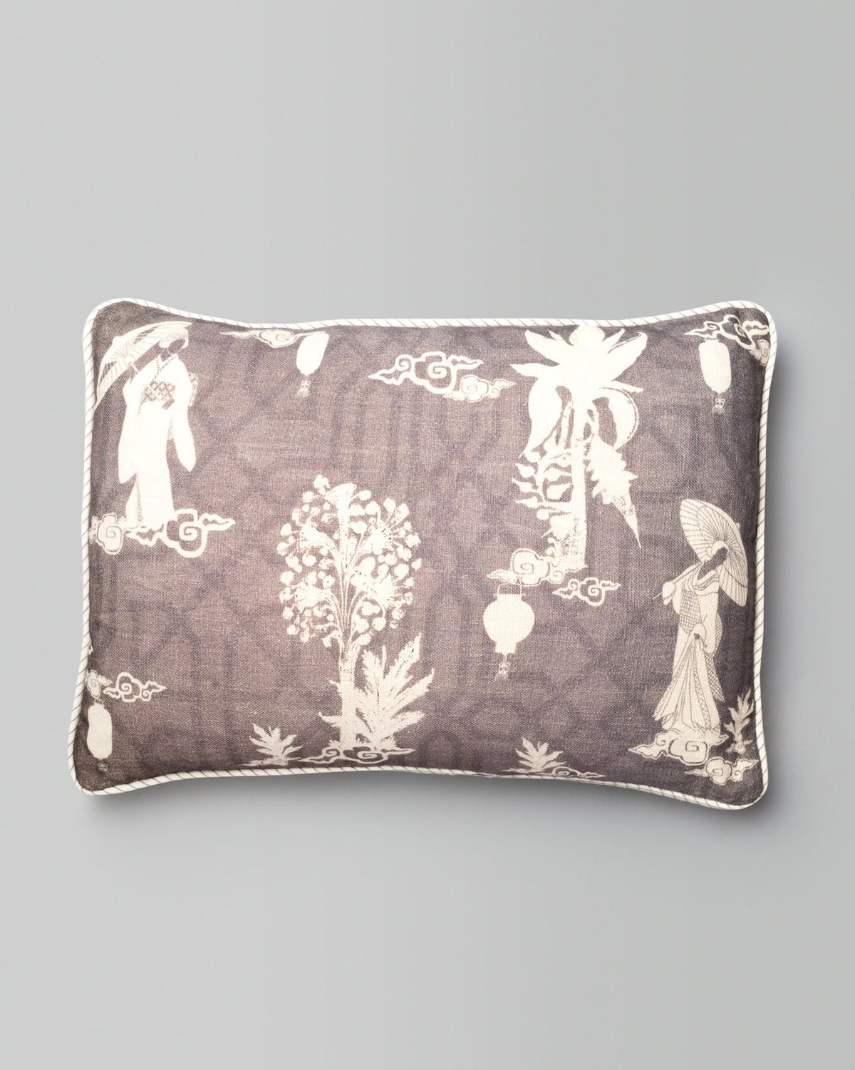 - Pair a host of floating clouds, Japanese lanterns and kimono clad figurines, in ivory and charcoal cotton with a sake party for a pick-me-up straight from the Orient