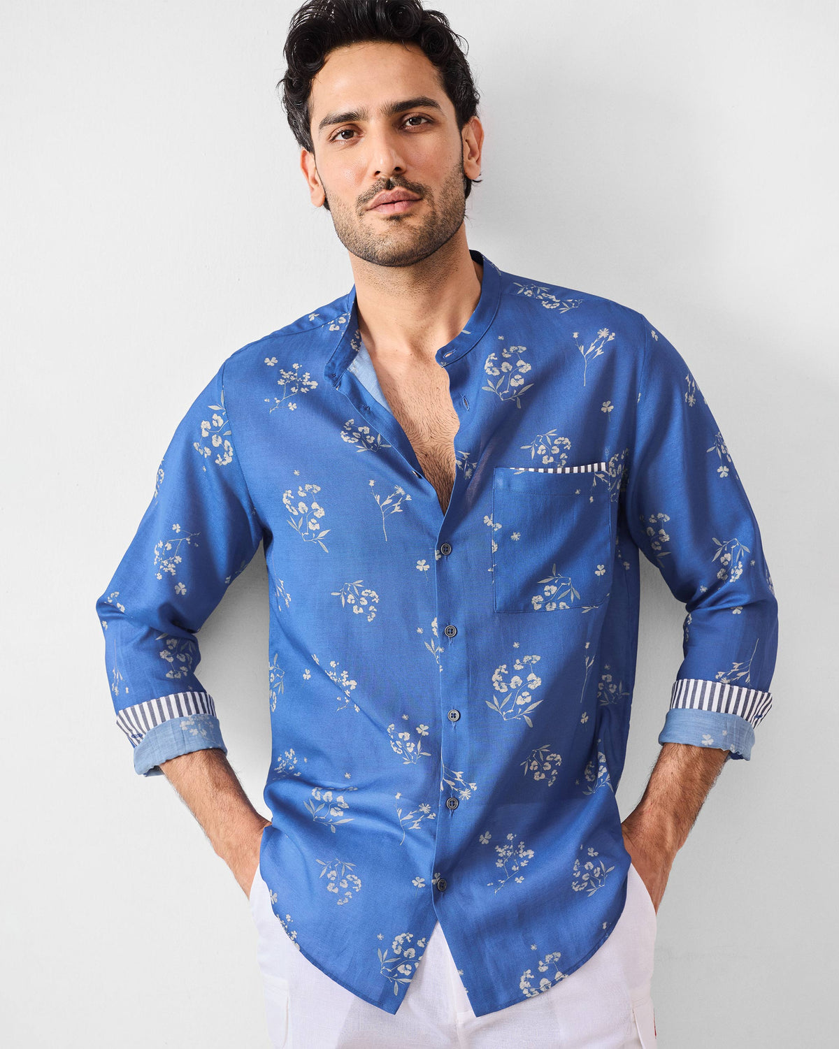 - The Myanmar Shirt comes in a classic fit in an all-over cyanotype-inspired print in deep navy tones.