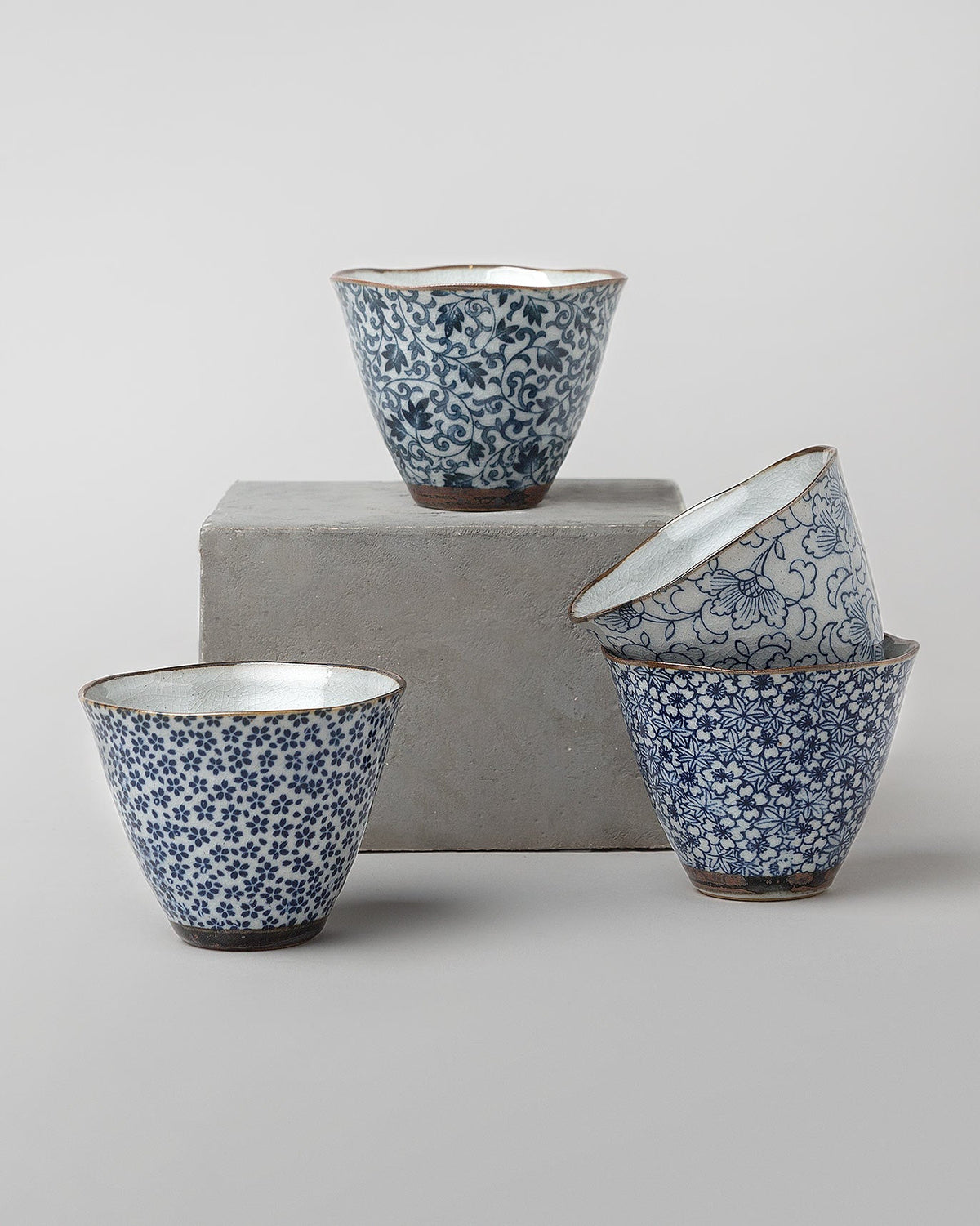 • Inspired in equal parts by India in form and China in spirit, our set of four indigo tea cups are punctuated with all manner of floral prints and vines in deep indigo. We'll be filling these with lime-infused water, warm tea, or freshly squeezed juice.