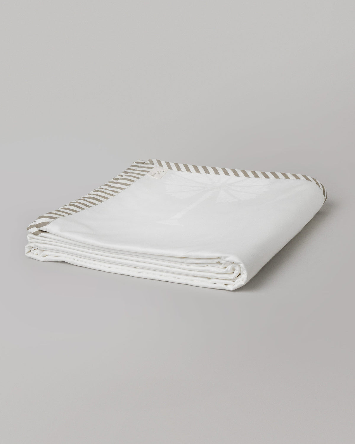 - Lined with our classic stripes in a gentle grey around the edges, the cover comes decked with beautiful palm trees subtly embossed on the fabric.