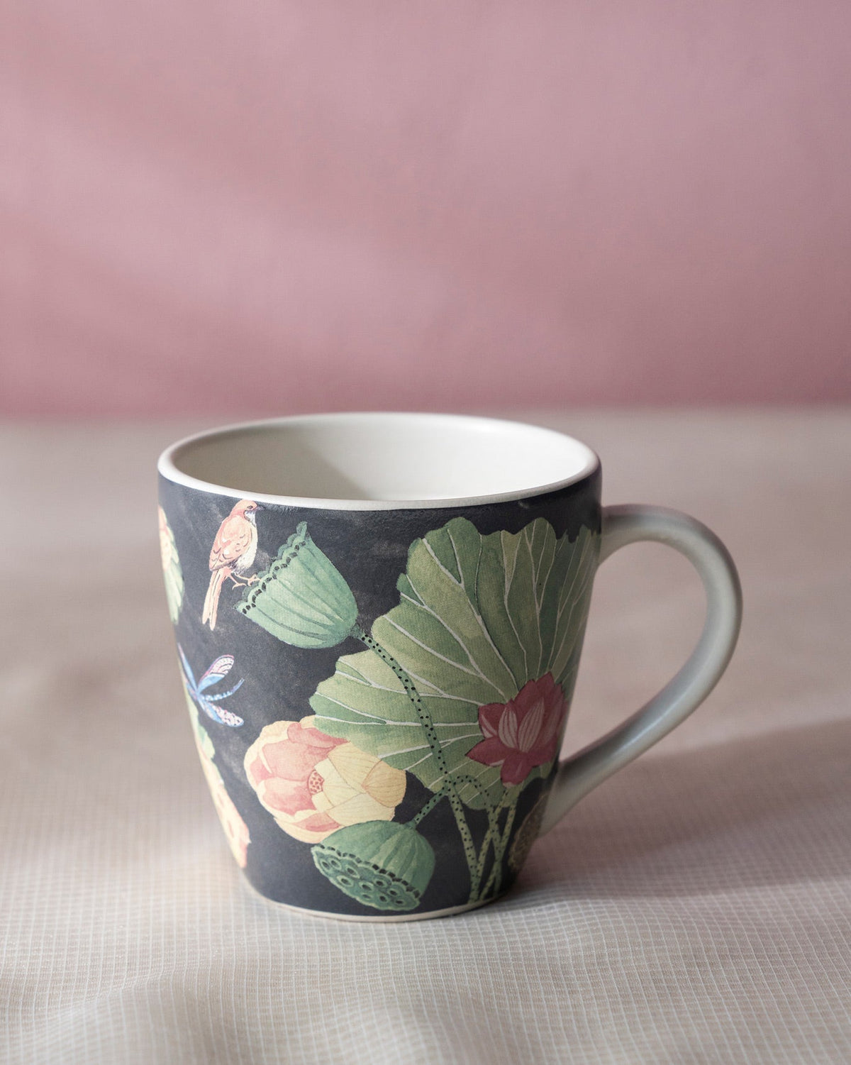 • The perfect accompaniment to your everyday rituals: a generously proportioned, botanical mug is designed for bottomless cups of tea/coffee