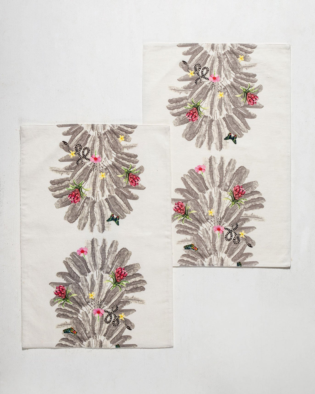 • Inspired by the indigenious flora and fauna of Madagascar, our set of two Ravenala Placemats feature a knife edge