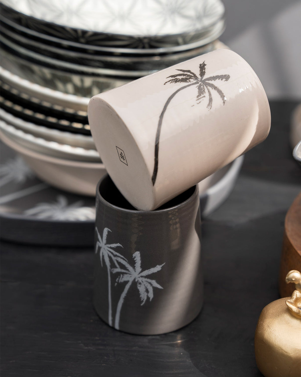 - Crafted in smooth, glazed stoneware, this set of hand-painted kulhars features swaying palm tree motifs