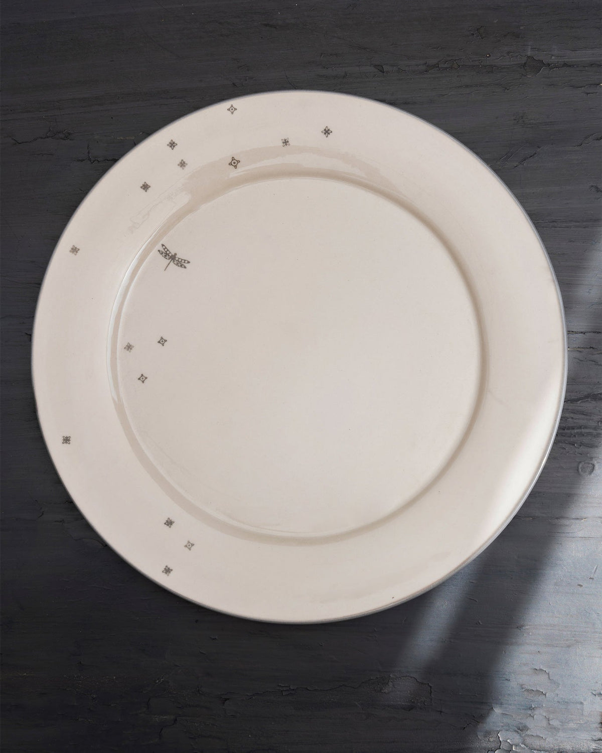 - Crafted in durable hand-painted stoneware, this dinner plate is dotted with twinkling stars and dragonfly motifs
