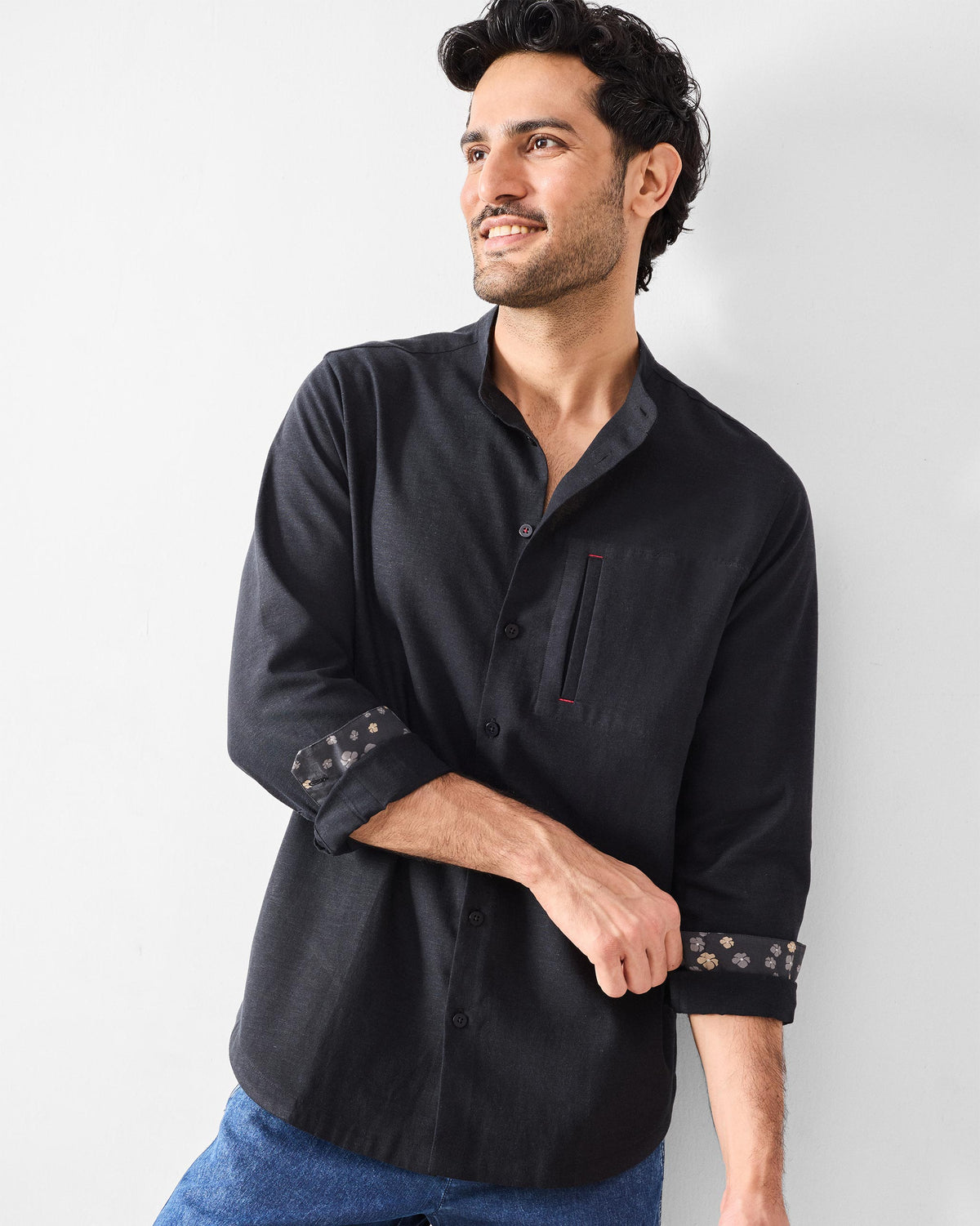 - Crafted in cotton linen in solid black – breathable, structured, and effortlessly stylish.