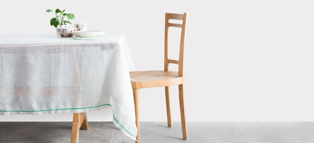 - This linen table cover comes in a subtle, elegant shade, with stylish contrast piping.