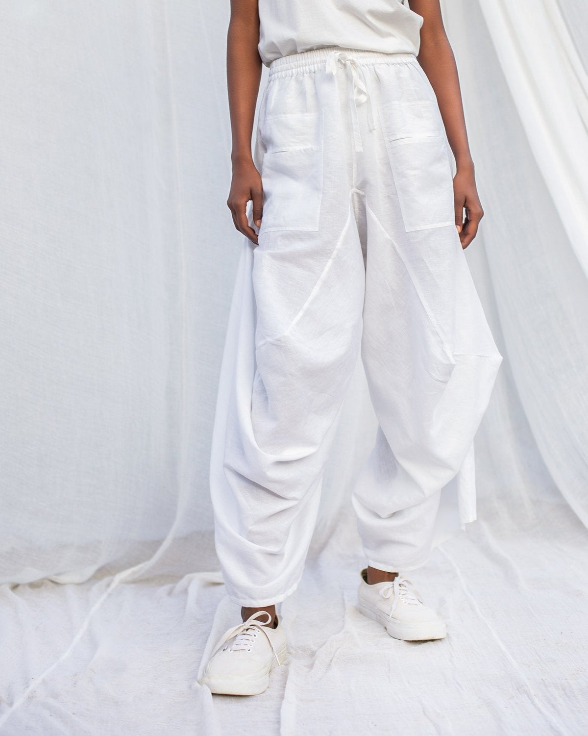 - An easy silhouette in relaxed cotton-linen comes with a snug waist and roomy pockets